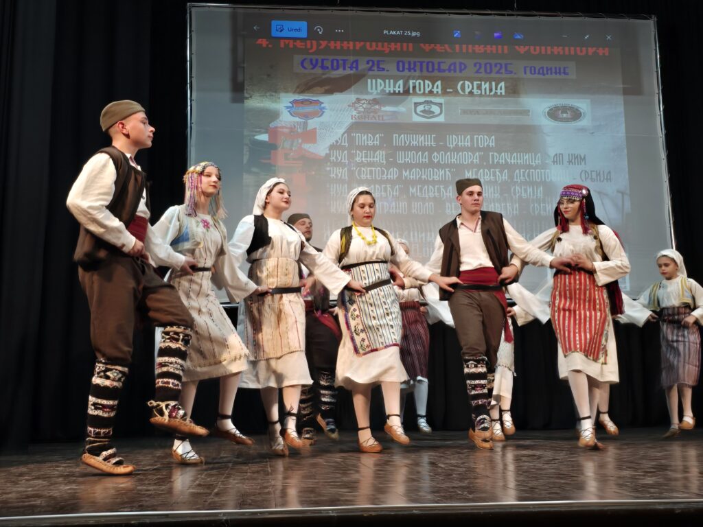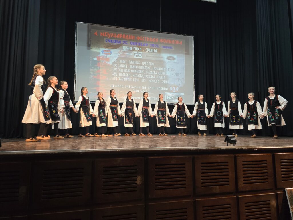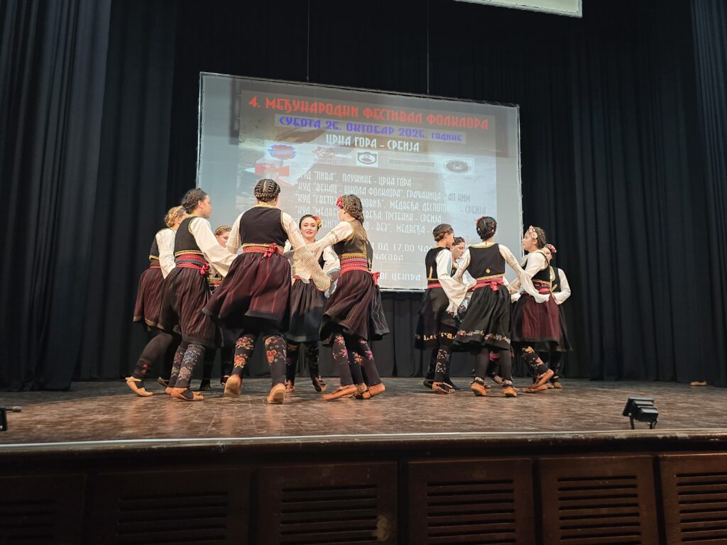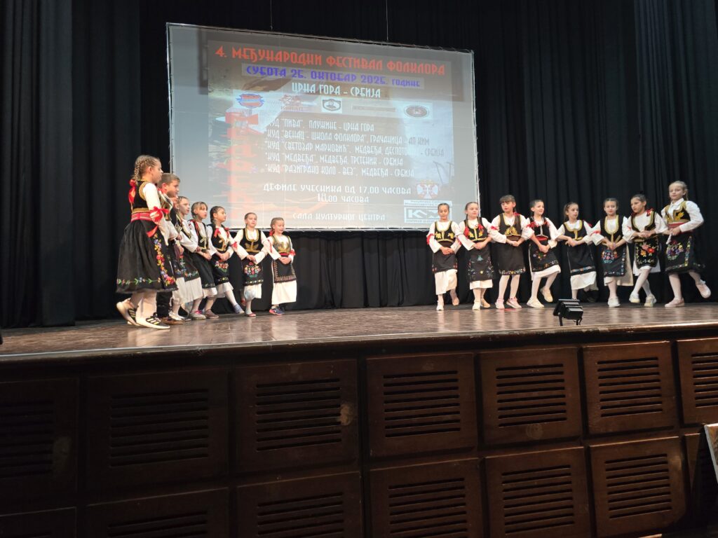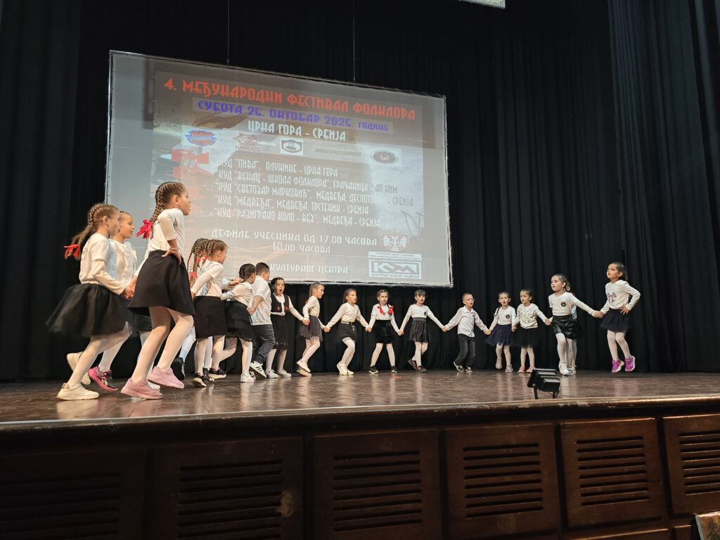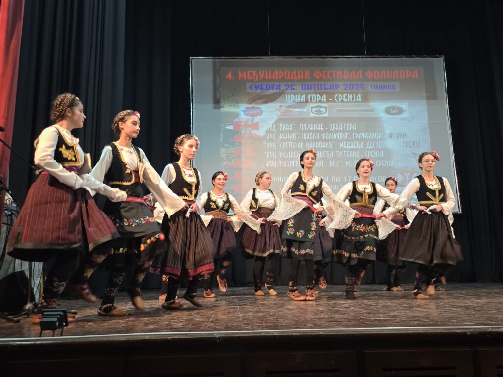 У суботу, 25. октобра 2025. године, у организацији Културног центра општине Медвеђа и уз финансијску подршку Министарства културе Републике Србије, одржан је 4. Међународни фестивал фолклора у Медвеђи. Ова манифестација, која из године у годину расте и по значају и по квалитету, окупила је културно-уметничка друштва из Србије, Косова и Метохије и Црне Горе, претварајући Медвеђу у центар народне игре, песме и пријатељства.